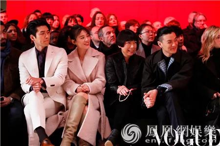 現場,周一圍一身長款墨綠色大衣霸氣外露,本就擁有長腿好身材的他,在黑色內搭的襯托下盡顯長腿優勢,外套內襯處又顯示精緻細節。網友直言:這是妥妥的義大利紳士范!雜誌主編張宇全程坐在周一圍身邊陪同頭排看秀,兩人時不時交流探討,氣氛十分歡樂。